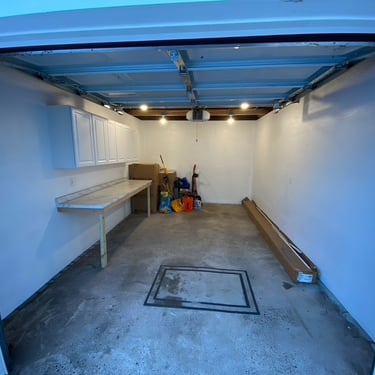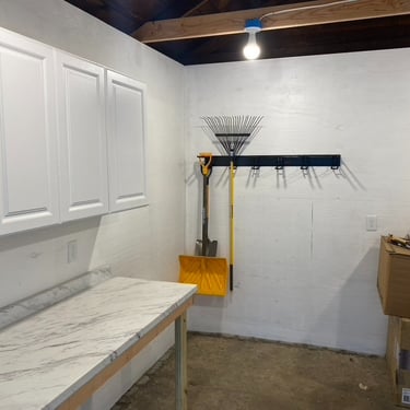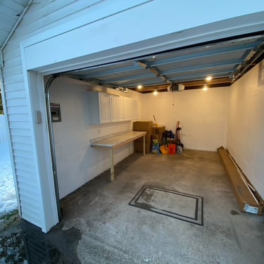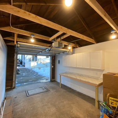 Just finished up this fun little outdoor project in Collingswood. The customer had a dusty old detached garage that was just being used to store random stuff leftover from the previous owner. The goal was to transform the space by adding electric for lighting, outlets, and a motion sensing flood light, and to make the space more usable for storage by adding some plywood walls, cabinets, and a work bench. We also replaced the existing 1x rafter ties with 2x6's so the ceiling could be used for further storage, and installed a garage door opener with keypad and remotes. Trenched from the house to the garage and installed a 30a sub panel for lighting and outlets. The customer was very happy with the result, and now has a convenient, well-lit, clean, user-friendly storage/work area! If you'd like to renovate your kitchen, bathroom, basement, garage, etc. into a more convenient and desirable use of the space, give us a call!