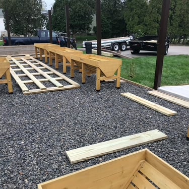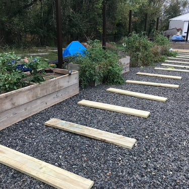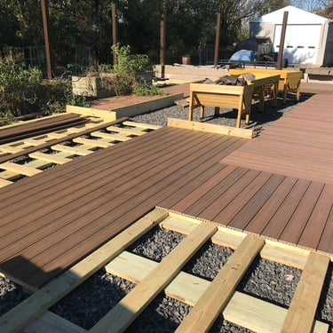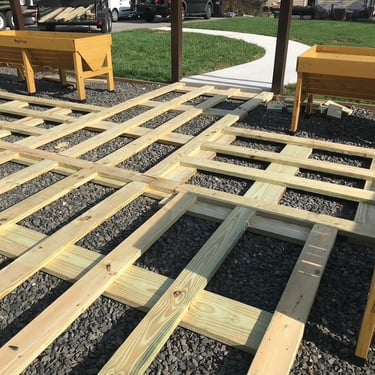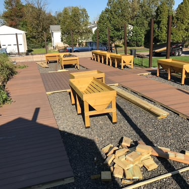 I love outdoor projects like this one! My customer had a large area outback for her garden. She loves gardening and was hoping to have a garden that would allow her to easily navigate in her wheelchair, so that she could plant, water, and tend to her garden. We started by framing a path in and out of areas, with a big platform in the middle, so she'd be able to get to all the flower beds from every side. Next we installed ALOT of Trex deck boards for her path. After that we sleeved the existing posts that were already there, after notching them down onto the perimeter framing. Installed mesh wire fencing around the whole garden, installed 2 gates, and covered the back area of the garden in privacy mesh